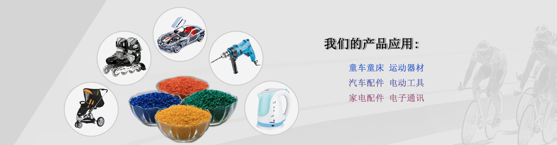 應用范圍:運動器材、家電配件、電子連接器、汽車配件、電動工具、醫療器材、童車童床、照相器材等。